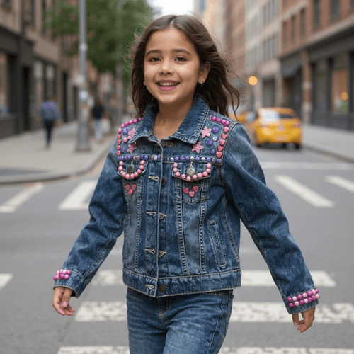This adorable Seed & Berri jean jacket is a showstopper, featuring a playful design adorned with sparkling hearts and stars. Perfect for adding a touch of magic and style to any outfit, this jacket is crafted to make every little girl shine with confidence and charm!