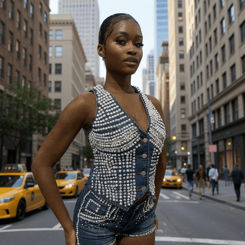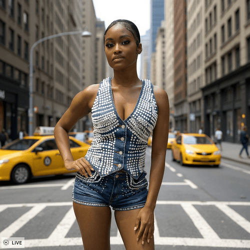 Turn every step into a spotlight moment with the Crystal Riot Denim Set—a sleeveless, deep-V vest and high-waist shorts drenched in bold pearl studs and rhinestone shimmer. This edgy combo brings festival sparkle and runway attitude, making it a Seed & Berri showstopper that’s equal parts glam rebel and downtown cool.