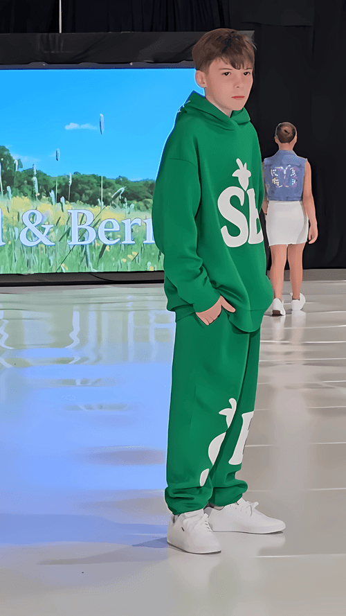 Keep their street style crisp with the Lucky Apple Hoodie Set—a vibrant green hoodie-and-jogger set splashed with bold Seed & Berri graphics. Cozy, oversized, and impossible to miss, it’s built for playground legends, mini runway stars, and every kid who loves a pop of fearless color.