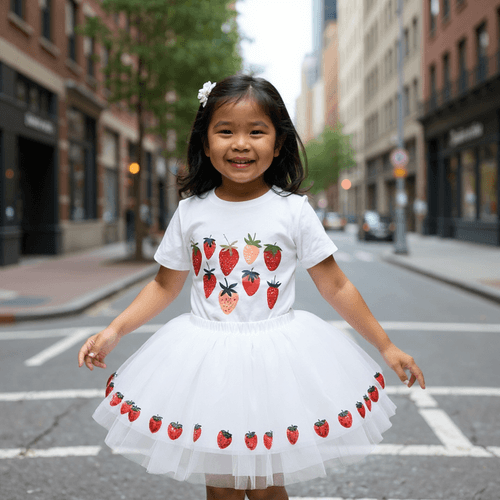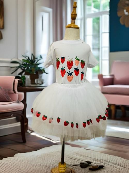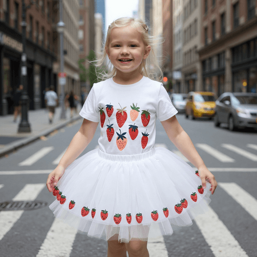 Berry sweet from top to twirl, the Many Berri Tee & Tutu Set is a feast of fruity fun! The crisp white tee is sprinkled with a colorful patch of strawberries, while the fluffy tulle tutu is trimmed with sparkling sequin berries all around. Perfect for parties, playdates, or any day she wants to look deliciously adorable.