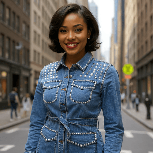Where elegance meets playtime — the Berri Luxe Pearl Denim Dress transforms denim into a twirl-worthy dream. Every pearl is hand-placed, every detail meant to shimmer.