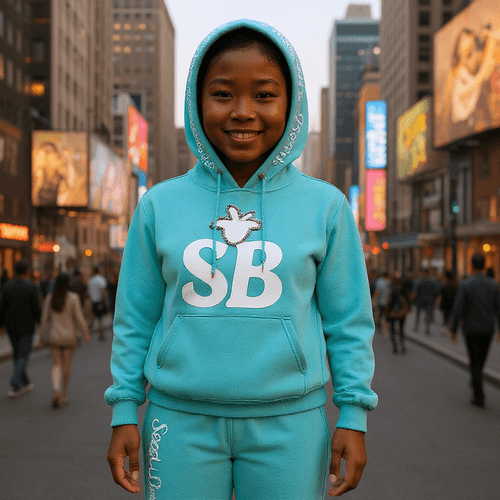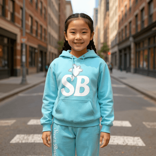 The Berri Blue Sky Tracksuit is where comfort meets sparkle. Soft sky-blue fabric, gentle rhinestone accents, and a carefree silhouette make it the perfect piece for adventures big and small.