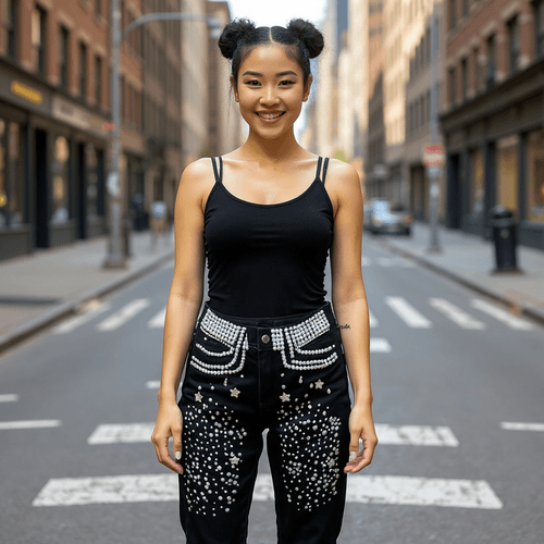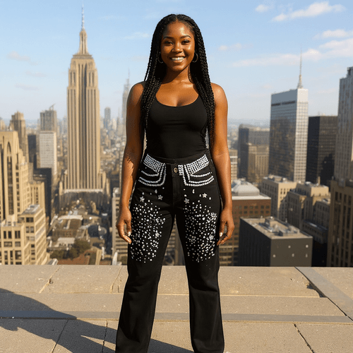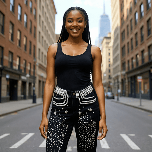 Designed for women who love to shine with confidence, the Starry Night Jeans are perfect for nights out, fashion-forward streetwear, or anytime you want to turn the city into your runway. Pair with a simple tank or dress them up — either way, you’ll sparkle like the night sky.