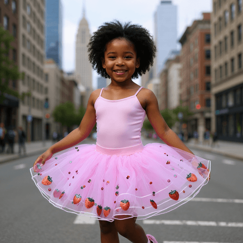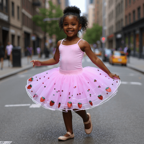 Sweet, twirly, and sprinkled with sparkle — the Strawberri Tutu is a berry lover’s dream! Layers of soft pink tulle are dotted with sequin strawberries and shimmering confetti, making every spin look like a celebration. Perfect for birthdays, tea parties, or just turning an ordinary day into a berry fabulous one.